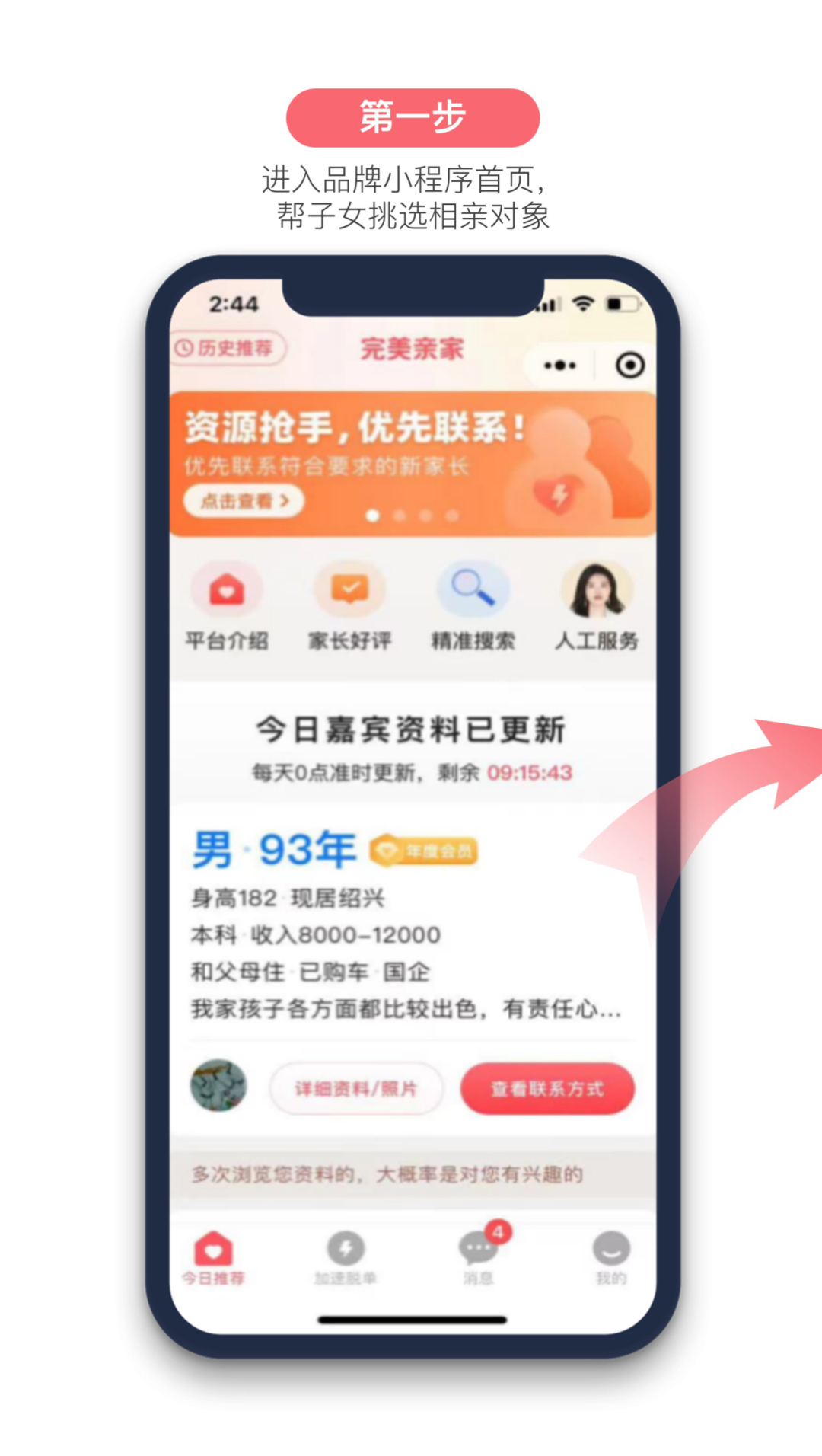 第四步:关注公众号,引导进入小程序