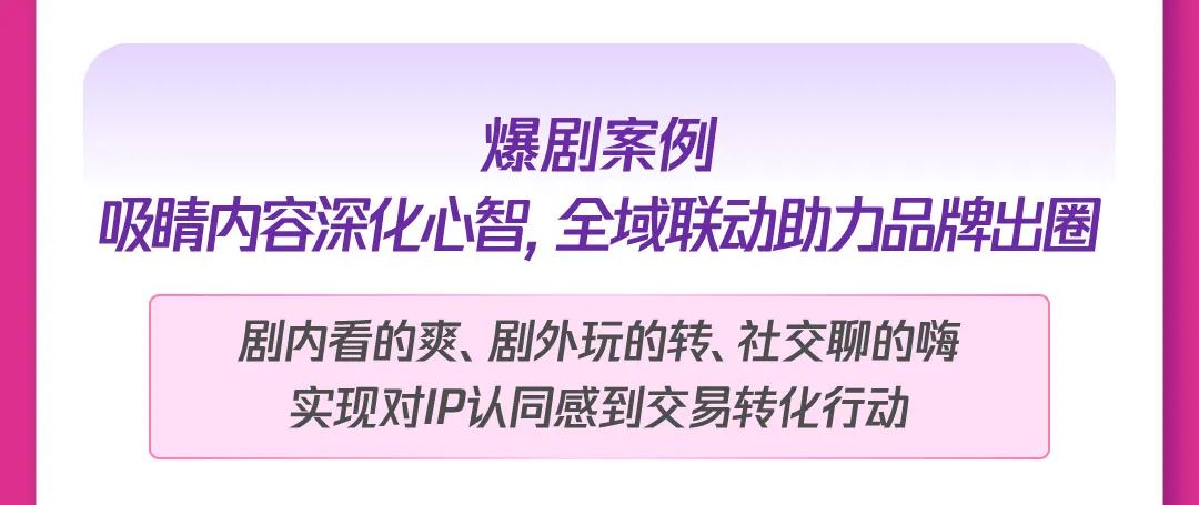 2)大剧联合共建:借势大剧IP爆款,深化用户人群心智,引爆品牌声量、实现品效共赢。