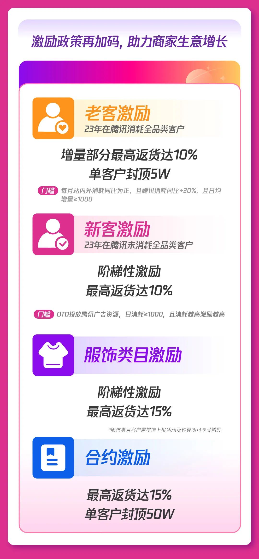 腾讯广告协同唯品会升级激励政策,通过奖励金扶持,合约激励等多元利好政策,助力商家抓住大促机遇,实现生意增长。